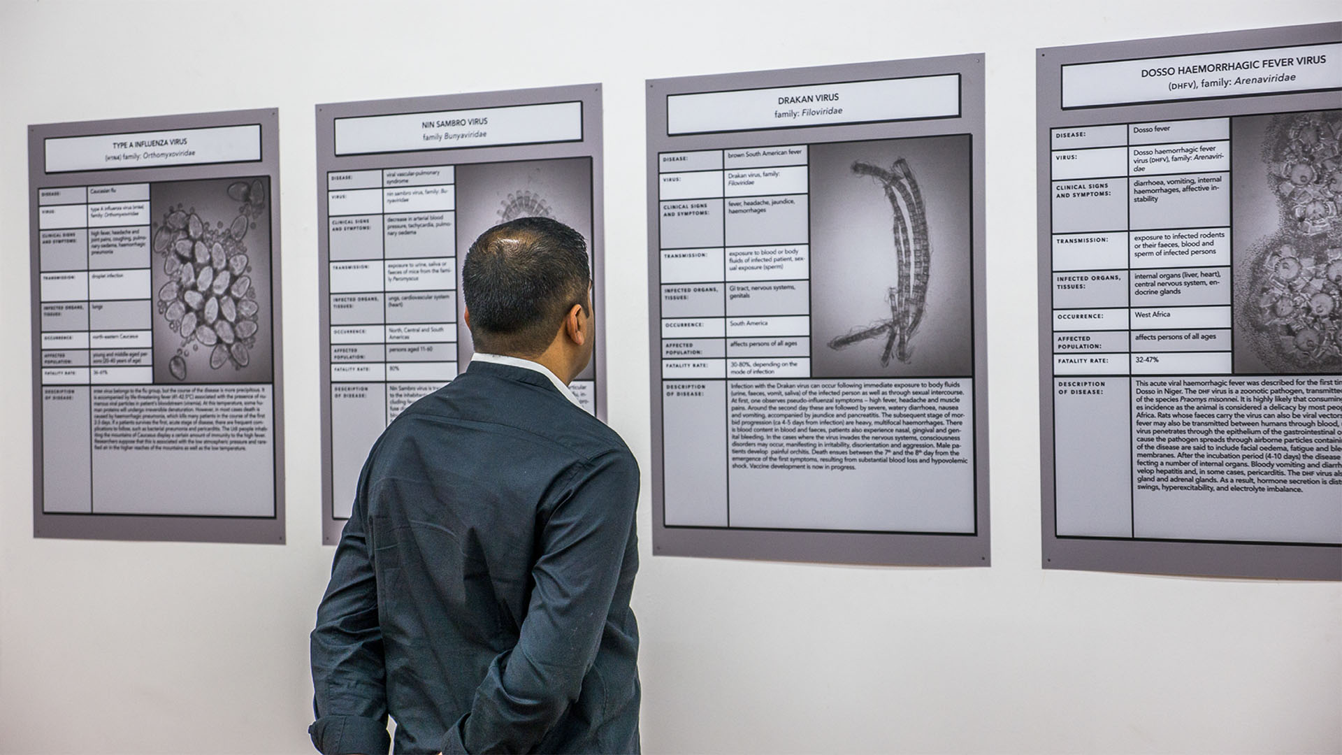 At first glance, this project goes far beyond art. It appears as a presentation of research evidence – carefully prepared infographics show the results of the latest discoveries of virology and their possible consequences. Going through the material requires patience but also… courage. It is necessary because the feeling of danger is extremely volatile and any even a minor thing can cause panic. Illustrations featured in infographics are particularly noteworthy, as they turn out to be the turning point of the whole project. The project itself may seem horrifying, and rightly so, because it is a diagnosis of the current situation. Even though the danger is real, the project provokes a question about the role of fiction, both in art and science. The artist poses this question through artistic means, starting from the assumption that in both fields the power of imagination is crucial. Without it, it is impossible to recognize the meaning of the project. The power of imagination makes it possible to interpret fiction as a testimony of reality, even if, at the end of the day, there is a suspicion that the evidence has been precisely staged.