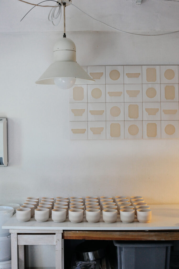W zeszłym roku razem z Alianą Krysztofik prowadziłyśmy warsztaty w ramach Łódzkiego Design Weeku i tam uczestnicy wykonywali kolarze z odpadków kalek ceramicznych z zakładów porcelany stołowych Lubiana i Ćmielów. Tworzyli swoje własne kompozycje też na naczyniach drugiego gatunku. Wcześniej w galerii jest razem z Gosią Paruch-Piotrowską prowadziłyśmy również warsztaty, gdzie używałyśmy historycznych biskwitów z pracowni ceramiki unikatowej w Centrum Nauki i Sztuki Stara Kopalnia, więc to to jest taka kolejna odnoga mojej działalności, o którą pytasz. Podsumowując – wramach działalności staram się prowadzić warsztaty, działać konceptualnie i działać zgodnie z briefem, projektując dla restauracji i kawiarni na życzenie klientów, oczywiście uwzględniając i poruszając się w ramach mojej bardzo minimalistycznej estetyki.