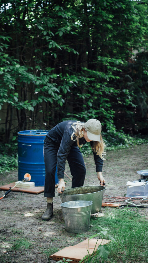 K.K.: Sama chętnie zapisałabym się na takie warsztaty, także musisz dać znać następnym razem, jak będziesz coś organizować w Poznaniu. No właśnie, wspomniałaś o tej technice wypału z zakwasem chlebowym – Raugo, jeśli dobrze pamiętam z rozmów jeszcze w twojej pracowni. Opowiedz tak obrazowo o tym procesie i może też balansie pomiędzy tym pieczołowitym projektowaniem, a otwarciem na taki przypadek i eksperyment.